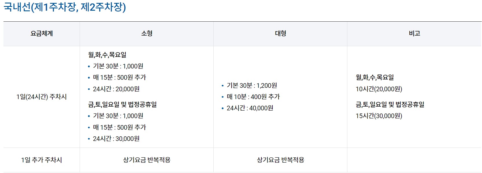 지난 여행때 돈 조금 아껴보겠다고 대중교통을 이용해서 다녀온적이 있었는데요 , 정말이지 왔다갔다하는것만으로도 진이 다 빠지고 즐겁게 돈 쓰려고 가는 여행인데 이거 조금 아껴서 뭐하나싶었네요.. 그때 너무 힘들었던 기억에 이번엔 차 끌고 가서 신나게 놀고왔어요 . 신나게 놀고 비행기타고 운전하는게 너무 피곤할줄알았는데 대중교통이용하는것보다 훨씬 낫더라구요 ! 오늘은 김포공항 주차요금 알아볼게요 김포공항은 모두 '유료주차'이며 크게 국내선(제1주차장,제2주차장)/국제선/국제선주차빌딩/화물청사 4개의 주차장이있고 총 6000여대가 주차할 수 있습니다. 16인승이상의 버스, 화물차 , 특수차를 제외하고는 전부 소형 승용차에 해당되므로 소형 기준으로 요금을 보시면됩니다. 김포공항 주차요금 국내선입니다. 국내선은 ..